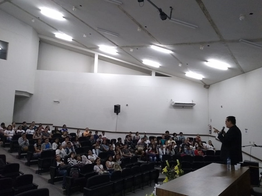 A segunda parte do minicurso foi dedicada às agradáveis sensações que a música proporciona e aos riscos para a audição presentes no descontrole dos decibéis a que nos expomos no momento da apreciação. "Lembro do caso de um aluno que durante as aulas nos empresta um ouvido e deixa o outro com o fone. Esse caso em particular me inspirou a trazer para o campus um minicurso com essa temática”, comentou Luciana ao alertar para o abuso na exposição a altas frequências sonoras. Essa problemática da saúde auditiva foi relacionada, inclusive, aos ruídos a que os indivíduos estão sujeitos em determinados ambientes de trabalho, o que é minimizado com o correto uso dos equipamentos de proteção individual (EPI).