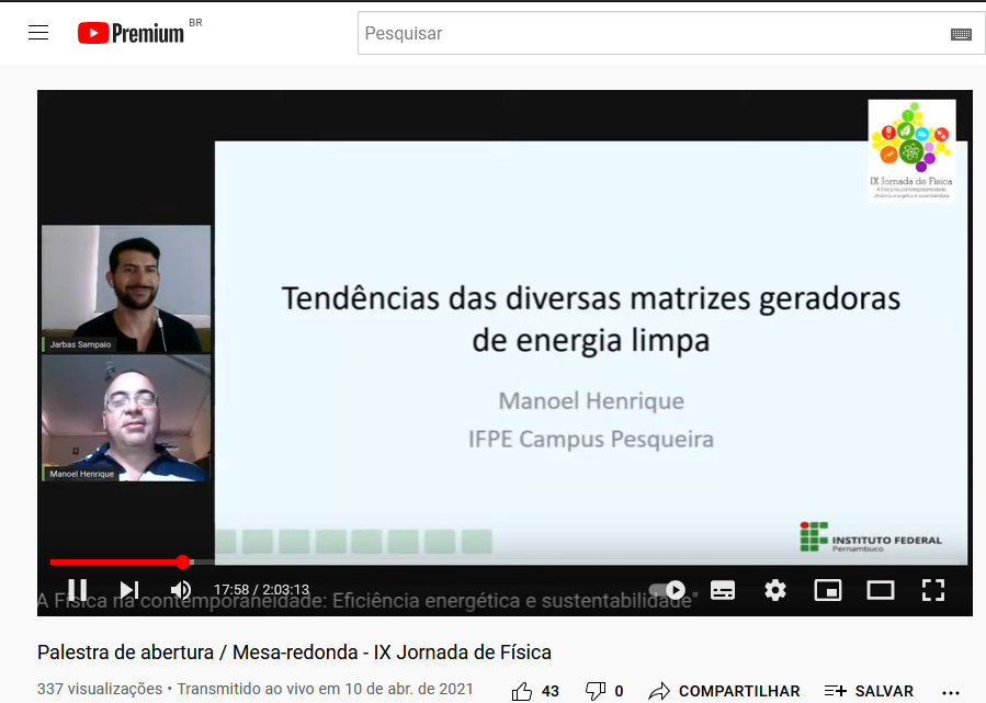 A Coordenadoria de Licenciatura em Física do Campus Lagarto traz a público os anais da IX Jornada de Física do Instituto Federal de Sergipe, ocorrida em abril deste ano, de forma virtual. Tendo como tema “A Física na contemporaneidade: eficiência energética e sustentabilidade”, além de palestras e minicursos direcionados à temática central, a jornada contou com comunicações orais de estudantes sobre diversos assuntos abordados em pesquisas que estão em desenvolvimento ou foram finalizadas recentemente.