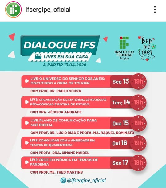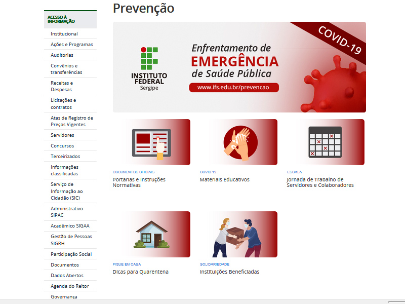 Outra iniciativa relevante foi a produção do hotsite http://www.ifs.edu.br/prevencao, que aglutinou informações, esclarecimentos e conteúdos relacionados ao cenário atual e seus reflexos na vida acadêmica. “O objetivo dessas ações foi informar, orientar, esclarecer e tirar dúvidas sobre a pandemia e todas as atividades de ensino, pesquisa e extensão impactadas por ela, promover o debate, envolver servidores, alunos e a população em geral na superação da crise”, ressaltou o chefe do Departamento de Comunicação do IFS, Juliano Azuma.