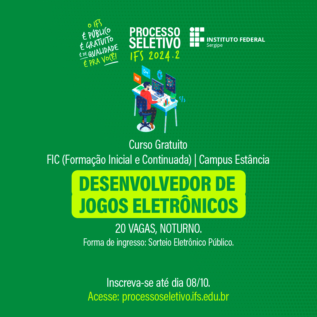 IFS oferece 20 vagas para o curso FIC de “Desenvolvedor de Jogos Eletrônicos”