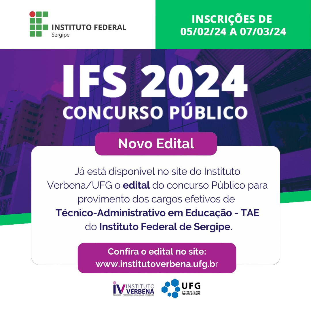 IFS divulga edital para concurso público com 43 vagas para cargos efetivos de técnico-administrativo em educação