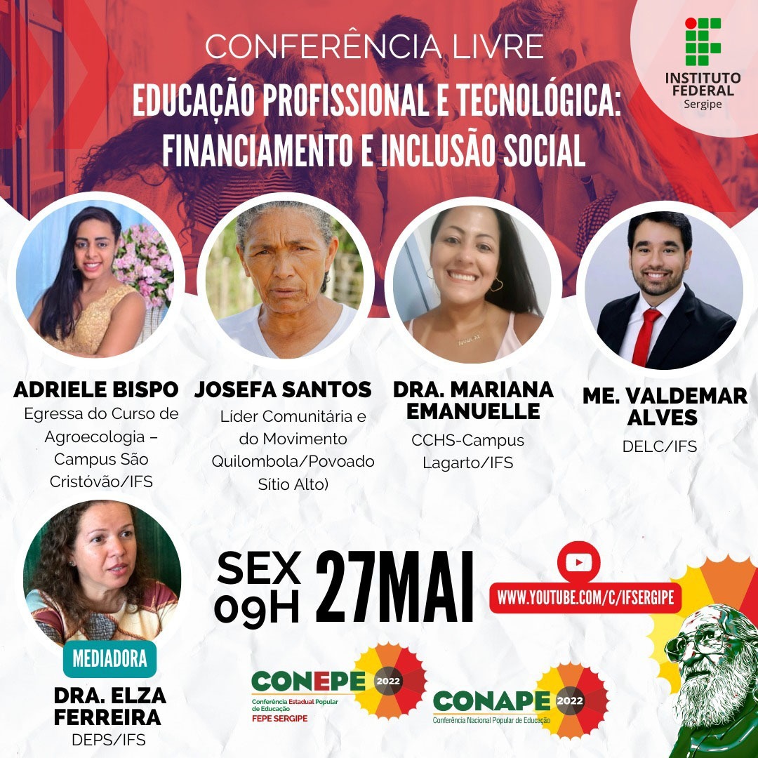 O evento será realizado no dia 27 de maio, às 9h, pelo canal do IFS no Youtube