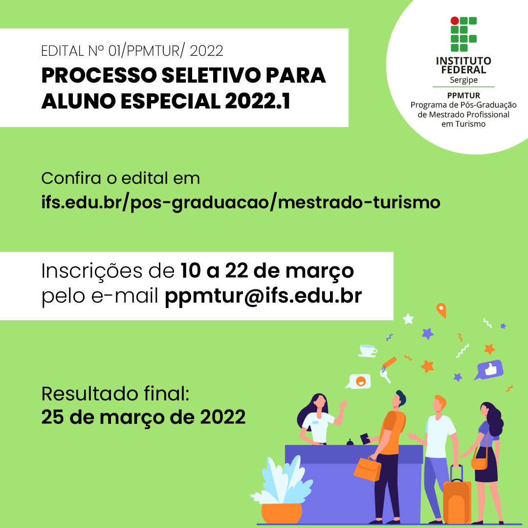 IFS abre inscrições para disciplinas optativas do Programa de Pós-Graduação em Mestrado Profissional de Turismo