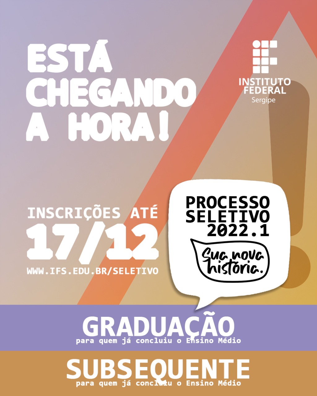 Inscrições do Processo Seletivo do IFS para cursos de graduação e subsequente vão até 17.12