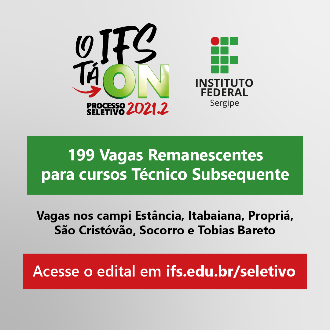 IFS abre seleção para 199 vagas remanescentes em cursos técnicos subsequentes