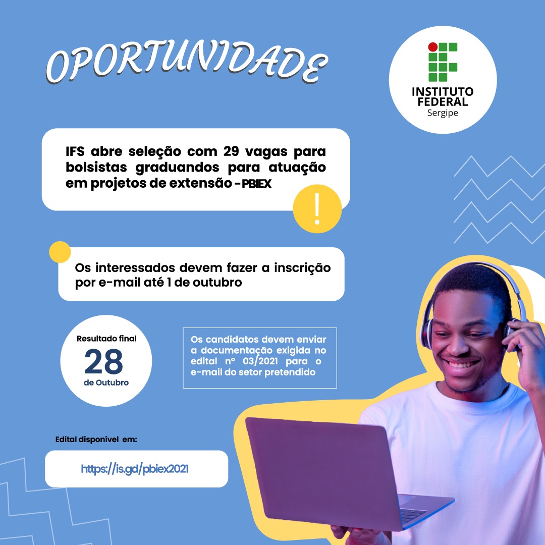 IFS abre seleção com 29 vagas para bolsistas graduandos para atuação em projetos de extensão