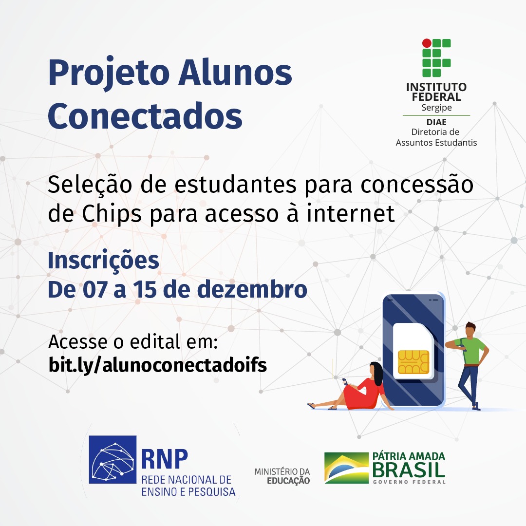 Serão contemplados estudantes de todas as modalidades ofertadas pelo IFS e as inscrições para o processo seletivo vão de 7 a 15 de dezembro.