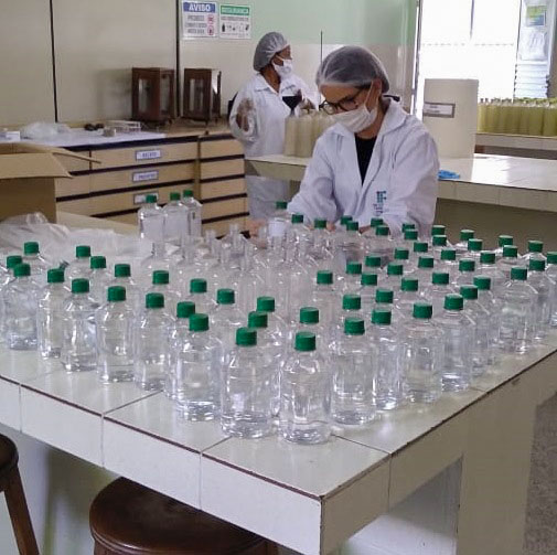Produção segue a todo vapor e contabiliza 2765 protetores faciais, 200 óculos de segurança, 278 litros de água sanitária e 32 litros de álcool a 70%