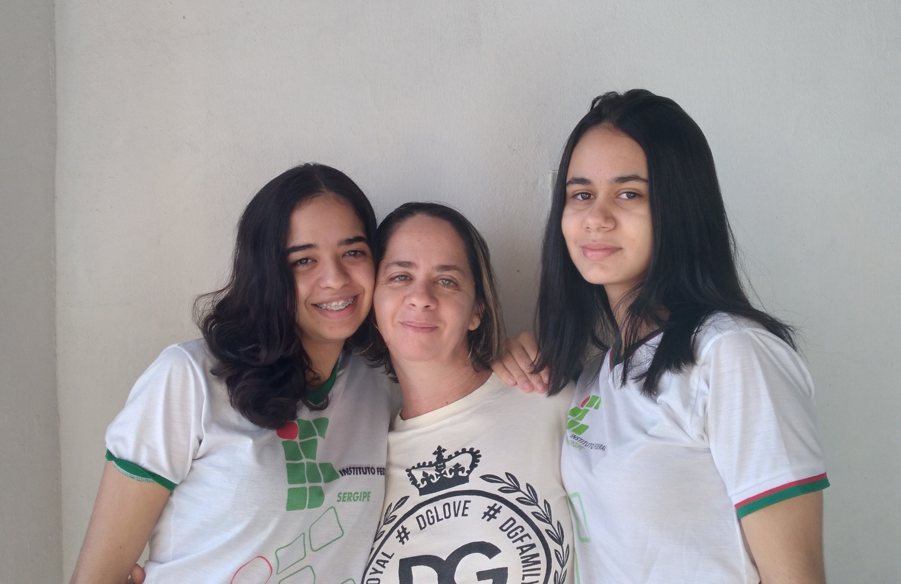 “Meu sonho era estudar. Quando vi a divulgação do Processo Seletivo do IFS, agarrei a oportunidade, mesmo pensando que era uma loucura uma mãe deixar três filhas em casa o dia todo. Quando me deparei com colegas de sala adolescentes, quase da idade de Gabriela e Giovanna, entrei em pânico. No início foi muito desafiador o convívio, mas a sala de aula melhorou muito a nossa relação. Convivendo com outros adolescentes, passei a entender mais um pouco a cabeça das minhas filhas em casa”, revela.