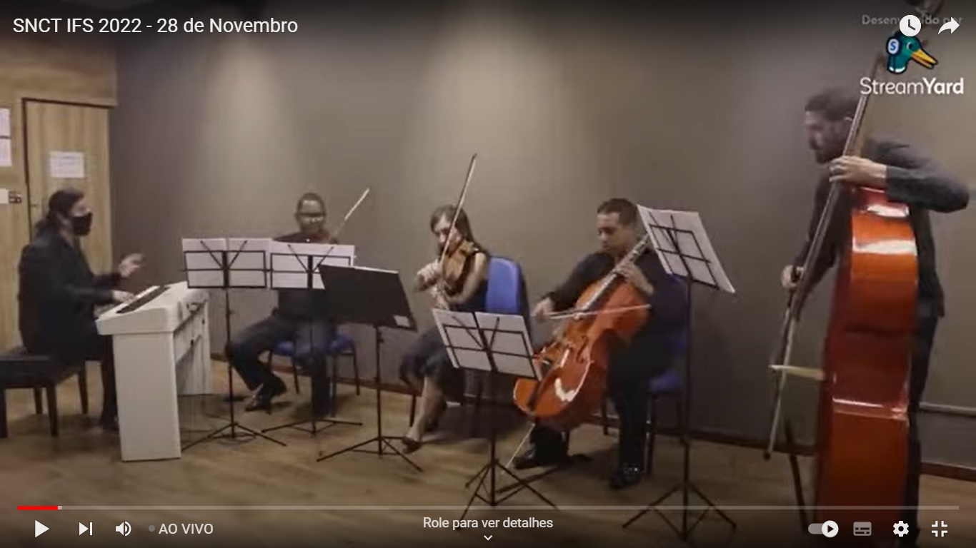 O evento começou com uma apresentação especial da Orquestra de Cordas do IFS (OrcIFS), sob a regência do maestro Daniel Freire, que conduziu os músicos para exibição de uma composição sobre o tema “Meu Papagaio”, do folclore sergipano para piano e orquestra; além da execução do hino nacional. Fizeram parte da composição da mesa de abertura: Ruth Sales, reitora do IFS; José Osman dos Santos, pró-reitor de Pesquisa e Extensão; e Mário Farias, diretor de Pesquisa e Pós-Graduação.