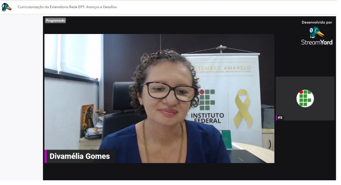 A convidada externa, a profª. drª Divamélia Gomes, explanou sobre o processo de implantação da mudança no IFPI e as etapas posteriores. “Num primeiro momento, realizamos estudos, análises e escuta de experiências que nos levaram a tentar responder como transformar a extensão em ação”, explicou. De acordo com a docente, foram criados os projetos integradores, em diversos cursos e módulos e à medida que são realizados, a cada semestre, os resultados são apresentados em eventos e revistas institucionais, o que permite a visualização dos pontos que necessitam ajustes. A professora Divamélia destacou ainda que, atualmente, a instituição enxerga a questão de como fomentar essas ações de extensão um desafio.