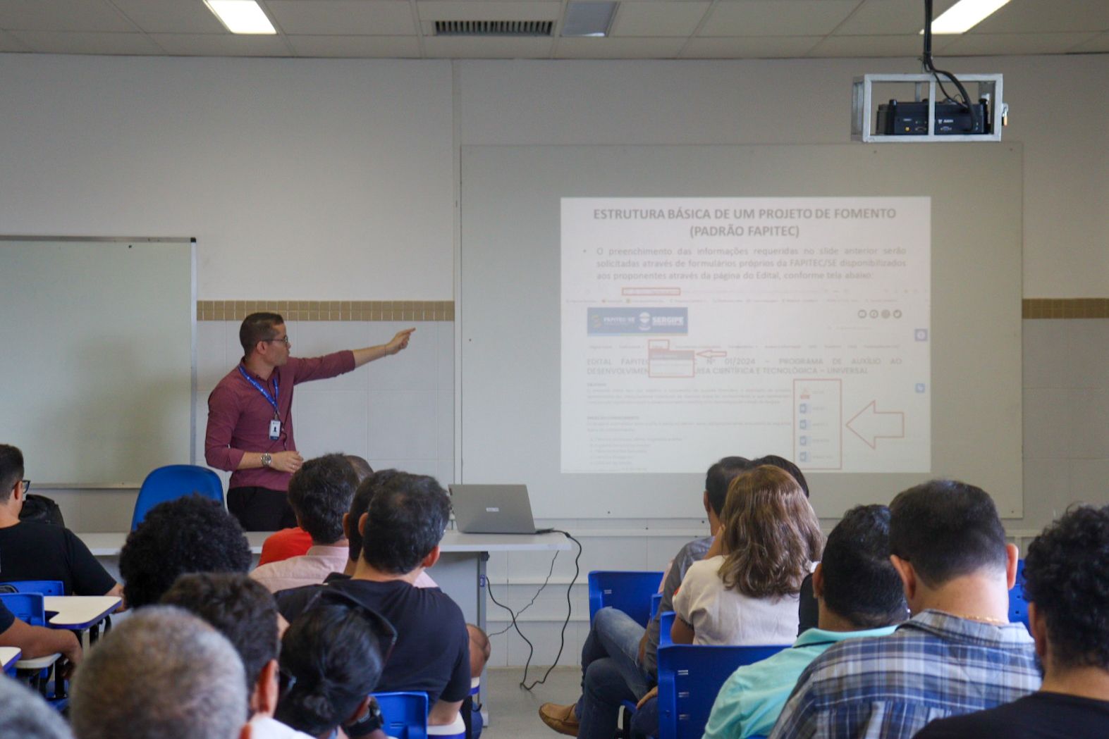 ção Tecnológica da Fundação de Apoio à Pesquisa e à Inovação Tecnológica do Estado de Sergipe (Fapitec/SE) a oficina tratou da elaboração de projetos de fomento e orientação acerca da prestação de contas, abordando de forma sucinta a estrutura básica de um projeto de fomento, documentos, itens obrigatórios e passo a passo da submissão via sistema E-Doc Sergipe.