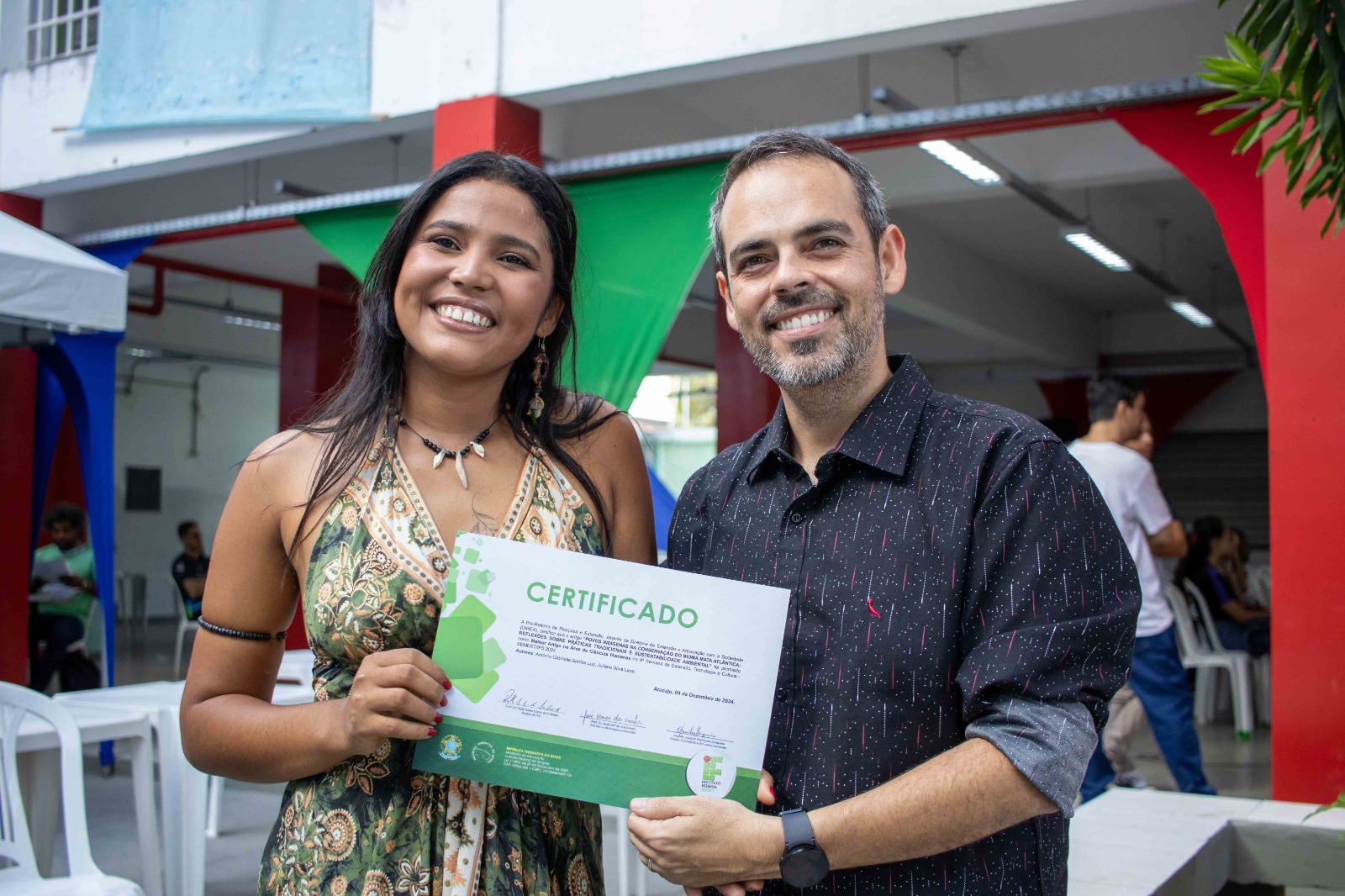 Gabriella Luz, cujo nome nativo é Anhangá, é aluna do 8º período do curso de Ciências Biológicas do Campus São Cristóvão. De origem tupinambá, ela também ficou bastante surpresa ao ser premiada com o 1º lugar da área temática Ciências Humanas com o projeto “Povos indígenas na preservação do bioma Mata Atlântica: reflexões sobre práticas tradicionais e sustentabilidade ambiental”.