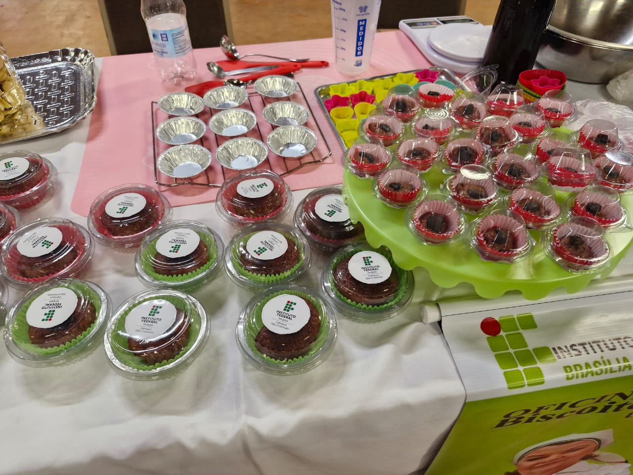 Durante o evento, o projeto ofereceu oficinas práticas em que os participantes aprenderam a preparar biscoitos e bolinhos saudáveis, com formulações simples e nutritivas. A atividade atendeu cerca de 60 pessoas, divididas em turmas de 20 participantes por oficina.