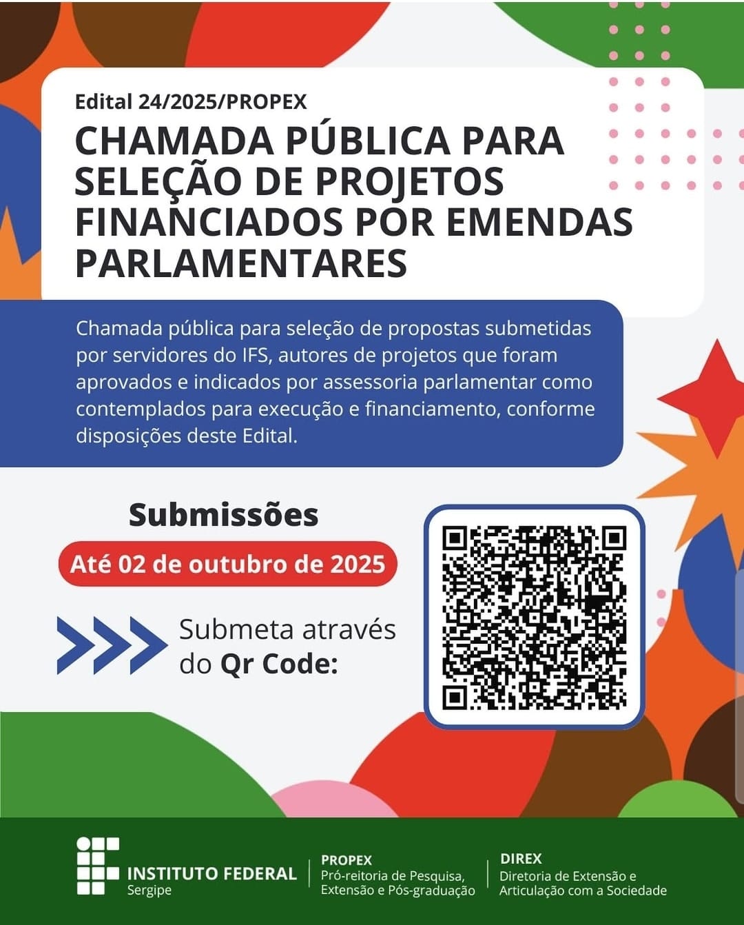 Tags: PROPEX , IFS , emendas parlamentares , chamada pública , extensão , SUAP , projetos , servidores , cronograma , Sergipe