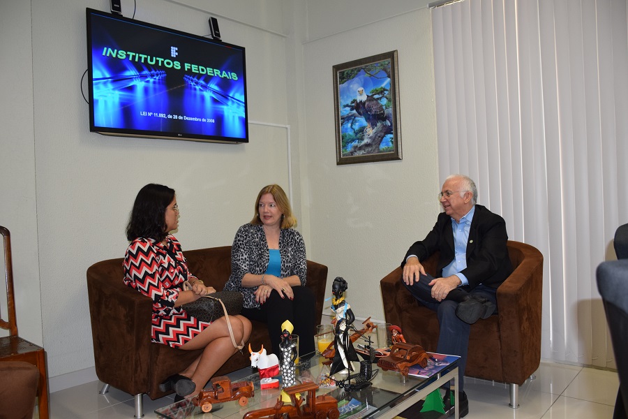 Reitor recebeu, em seu gabinete, sócias de empresa que viabiliza a troca de experiências entre universidades dos Estados Unidos e instituições de pesquisa e extensão brasileiras