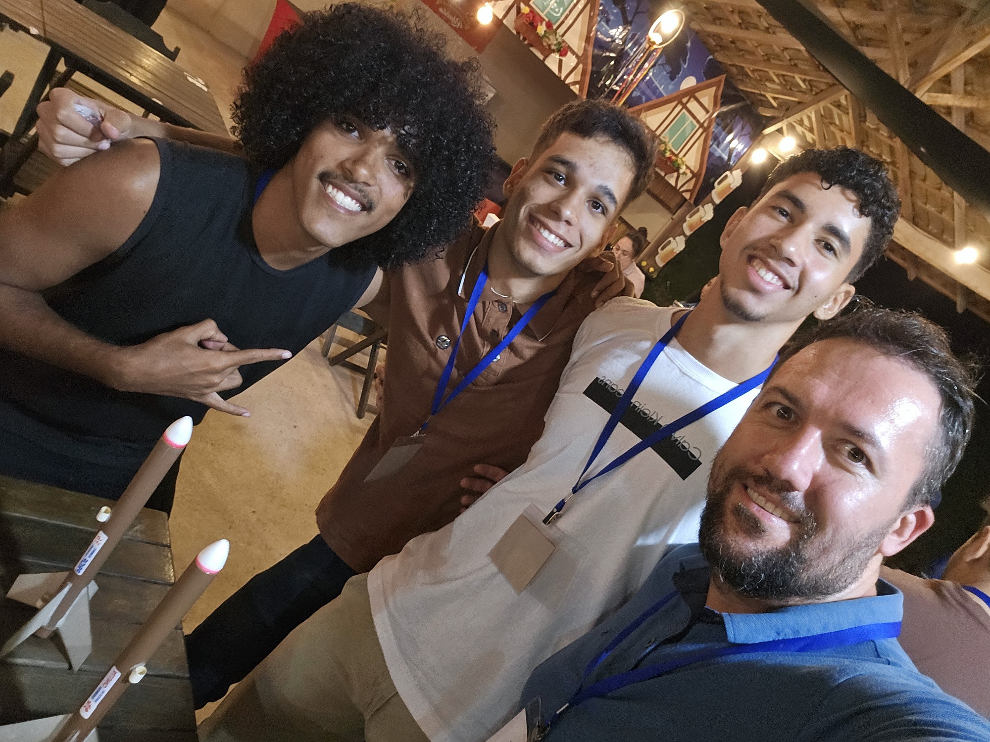O talento, a dedicação e o espírito de equipe levaram estudantes do Instituto Federal de Sergipe (IFS), Campus Tobias Barreto, ao pódio na Jornada de Foguetes 2025, realizada entre os dias 6 e 9 de outubro, no Hotel Fazenda Ribeirão, em Barra do Piraí (RJ). A equipe formada pelo coordenador e professor, Vagner Santos, e pelos alunos: Aislan Francisco dos Santos, Enzo Juan Santana e Riquelme de Souza, do 3º ano do curso técnico integrado em Administração, foi consagrada campeã da competição, representando o IFS com destaque nacional.