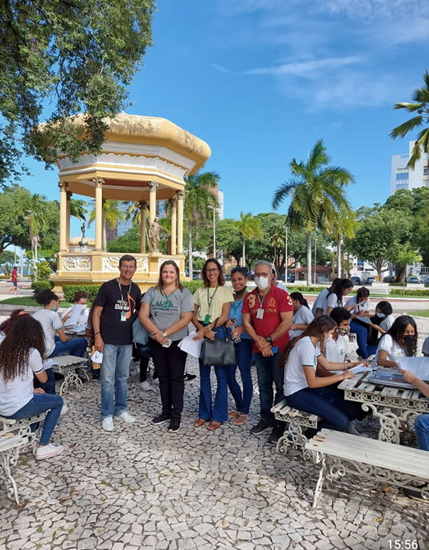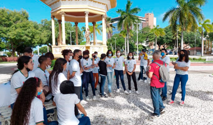Os alunos do 2º ano do curso técnico em Edificações, integrado ao ensino médio, do Instituto Federal de Sergipe, campus Aracaju, tiveram uma aula diferente na tarde de segunda-feira (25). Na praça Fausto Cardoso, centro da capital sergipana, os estudantes participaram de uma atividade para conhecer a história da praça e dos seus elementos patrimoniais, palácios e os estilos arquitetônicos do local. O Aulão Interdisciplinar envolveu as disciplinas Desenho Assistido por Computador, História II, Língua Inglesa II e Filosofia.