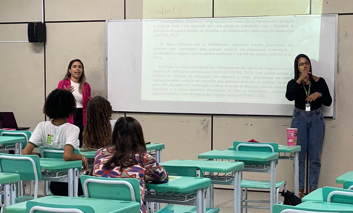 A segunda abordou as inovações tecnológicas na produção de queijo tipo Petit-suisse, dirigida pela pesquisadora Hannah Caroline Santos Araujo, formada em Engenharia de Alimentos (UFS) Eng. Alimentos (UFS) e doutora em em Biotecnologia (Renorbio). Durante os debates e palestras, ex-alunas do Curso de Alimentos foram destaques com a apresentação de cases de sucesso. Do IFS à UFS: 10 anos de uma trajetória de sucesso foi o tema conduzido pela técnica em Alimentos pelo Instituto Federal de Sergipe, Crystianne Santana Franca, hoje, bacharel e mestre em Nutrição pela Universidade Federal de Sergipe. De aluna à servidora do IFS: contribuições do técnico em Química de Alimentos nas tomadas de decisões e novos desafios, foi o tópico apresentado por Geneluce Cruz Siqueira Santana, técnica em Alimentos (IFS), com formação em Química (UFS), especialista em Gestão de Segurança de Alimentos (Senac) e mestre em Ciência e Tecnologia de Alimentos (UFS).