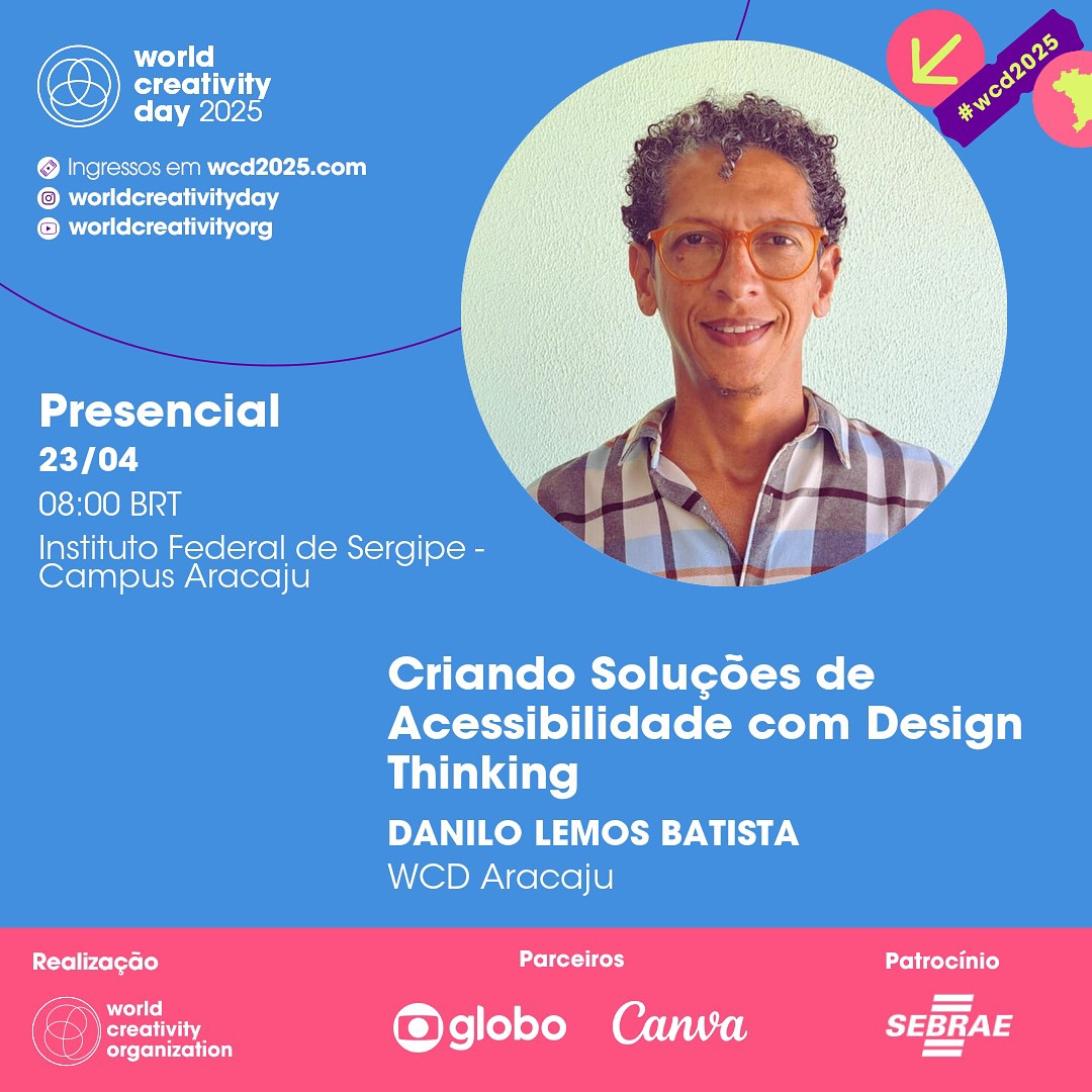 De acordo com o coordenador do Napne e colíder responsável pelo tema “Acessibilidade” da WCD Aracaju 2025, professor mestre Danilo Lemos Batista, promover experiências com a diversidade de temas e abordagens como as da World Creativity Day é importante para enriquecer a formação acadêmica da