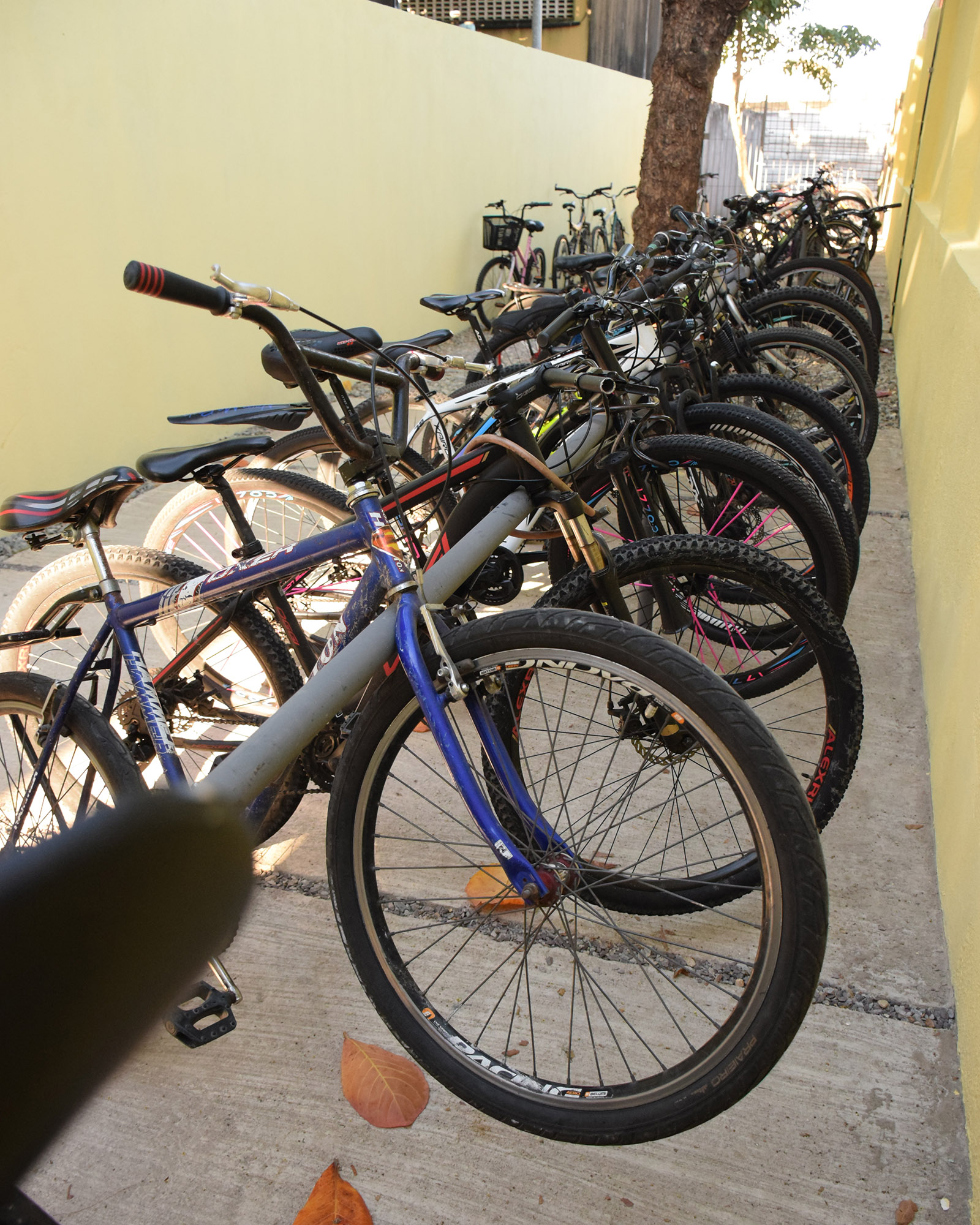 O bicicletário está instalado no pavilhão principal, área que fica a direita após o portão de acesso ao campus, e funciona das 5h às 23hO0. Durante o período de recesso escolar, a direção-geral determinou a realização de obras de manutenção no pavimento e serviços de pintura na área interna para criação do novo espaço para bicicletas.