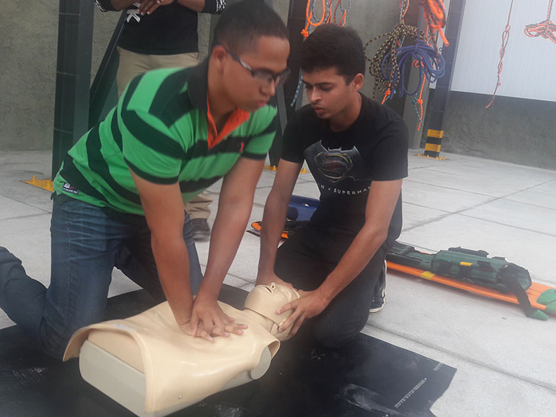A atividade, que faz parte do projeto micro estágio da Coordenadoria de Saúde e Segurança do Trabalho [Cosset], tem o objetivo de preparar os estudantes no atendimento a situações de emergência para trabalhadores da indústria que estejam em condições de alto risco e que envolvem a saúde e segurança do trabalho.