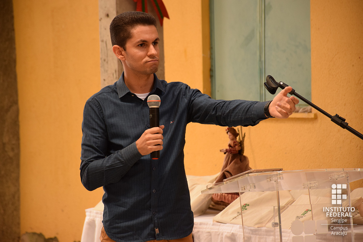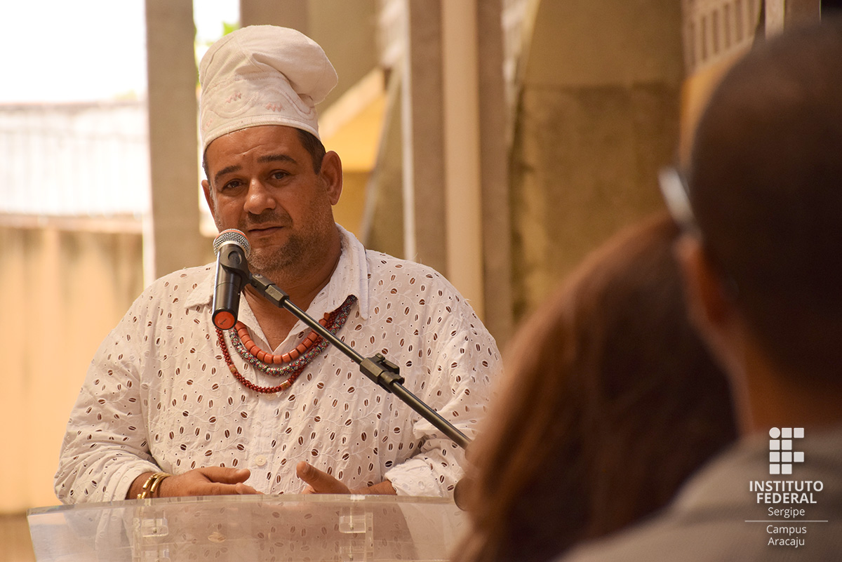 Em sua fala, o candomblecista Fernando José Aguiar fez referências à história e importância dos seus antepassados ao tratar de respeito, amor, resiliência e fé. Ele também parabenizou o campus Aracaju por abrir suas portas para um representante das religiões afro-brasileiras. “Penso que esta instituição dá muitos passos à frente na garantia da laicidade do estado e da educação brasileira. É muito importante esse momento aqui para todos nós que somos das religiões afro-brasileiras de Sergipe”, enfatizou.