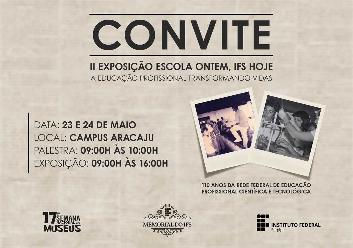 Na exposição que ficará à disposição da comunidade no dias 23 e 24.5, das 9 às 16h, o acervo será composto por fotografias e objetos que representam a trajetória histórica do Instituto Federal de Sergipe em suas diversas fases e, tem como objeto uma abordagem que dará a conhecer à nossa comunidade acadêmica a história da educação profissional no estado de Sergipe.