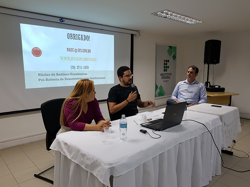 A empregabilidade e mercado de trabalho na área ambiental – desafios, cenários e perspectivas foi o tema de abertura do seminário. O economista e servidor Wesley Oliveira Santos apresentou dados que foram coletados pelo Núcleo de Análises Econômicas da Pró-reitoria de Desenvolvimento Institucional do Instituto Federal de Sergipe, setor responsável por analisar sistematicamente o mercado de trabalho no estado , de modo a elaborar estudos que permitam aos gestores do IFS avaliar os setores associado aos cursos que o Instituto oferta ou tenciona oferecer.
