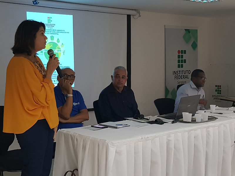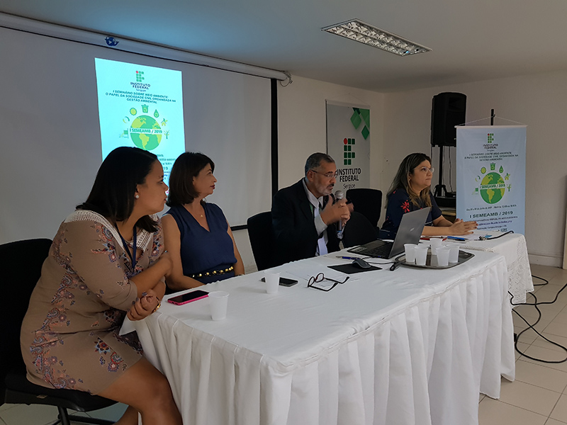 A “Preservação do Meio Ambiente Análise, Diagnóstico e Perspectivas” foi o assunto da mesa-redonda no segundo dia do seminário, 5. A presidente da Associação Brasileira de Engenharia Sanitária e Ambiental de Sergipe, Abes-SE, professora doutora Kelma Maria Nobre Vitorino, falou sobre educação ambiental e resíduos sólidos , o professor mestre do curso de Saneamento Ambiental do IFS, engenheiro civil Jorge Luiz Sotero de Santana, abordou o esgotamento sanitário e drenagem urbana e a especialista da Secretaria Municipal do Meio Ambiente (Sema), tecnóloga Maria Helena Santos , comentou sobre saneamento e licenciamento ambiental. A professora Maria Silene da Silva atuou como mediadora.