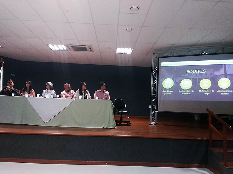 Desta forma, Verônica Barbosa Santos contou a história do IFS - campus São Cristóvão, em jogo, “um projeto gamificado que aborda os 84 anos da instituição anteriores à transformação em Campus São Cristóvão, de uma maneira lúdica e interativa, a partir de missões e desafios nos quais o passado ganhou sentido material para os alunos”, conforme enfatizou.
