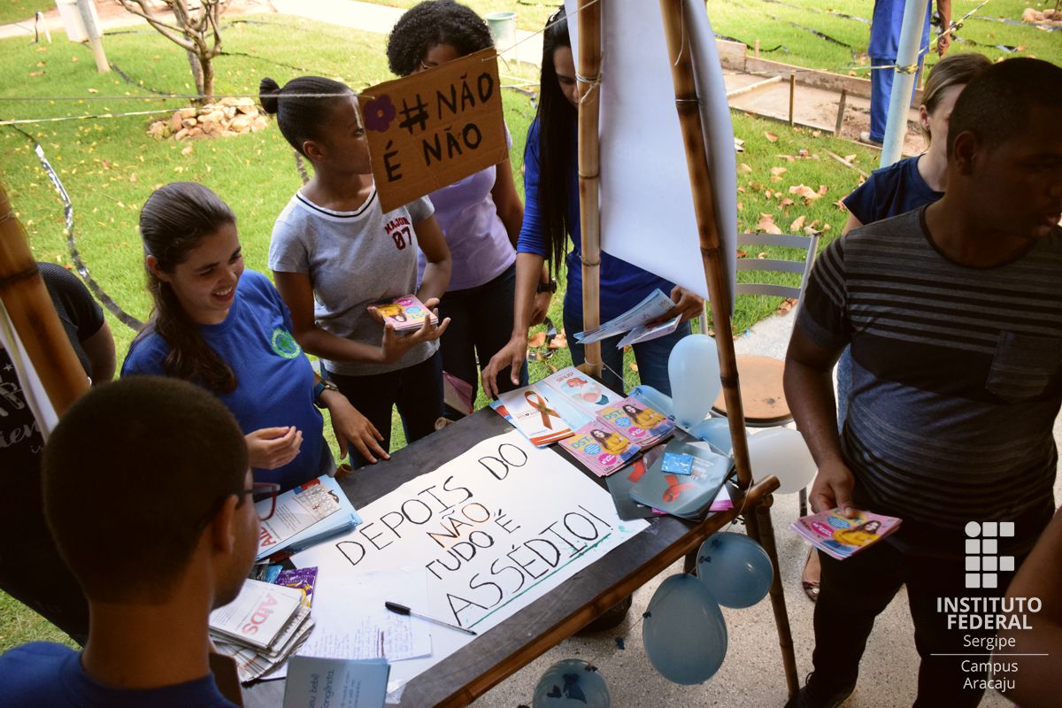 Estudantes do 4º período (vespertino) do curso técnico em Segurança do Trabalho entraram no ritmo de Carnaval para alertar a comunidade acadêmica do Instituto Federal de Sergipe, campus Aracaju, sobre as doenças sexualmente transmissíveis (DST) e assédio neste período de festa.