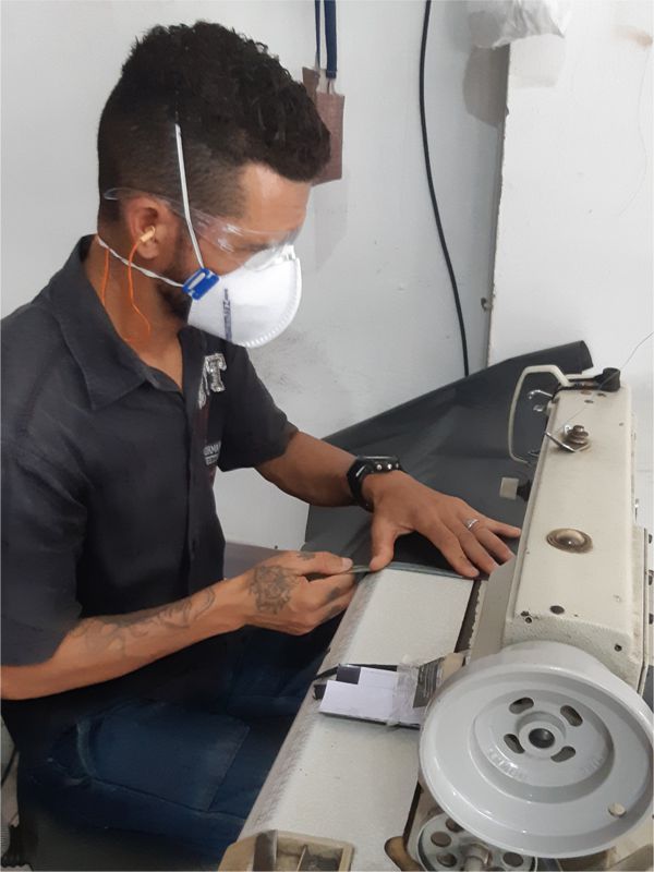 A atividade foi realizada em um sábado, das 8h às 12h, na área interna do estabelecimento Arte Estofados, localizado na rua Rafael de Aguiar, 735, bairro Pereira Lobo, em Aracaju. Inicialmente, os participantes receberam da equipe do projeto Equipamentos de Proteção Individual, EPIs. Em seguida, eles desenvolveram a modelagem, corte e costura sob orientação do profissional da empresa parceira Arte Estofados, o estofador José dos Santos. Após o processo de modelagem e corte, utilizaram a máquina de costura para produzirem os produtos.
