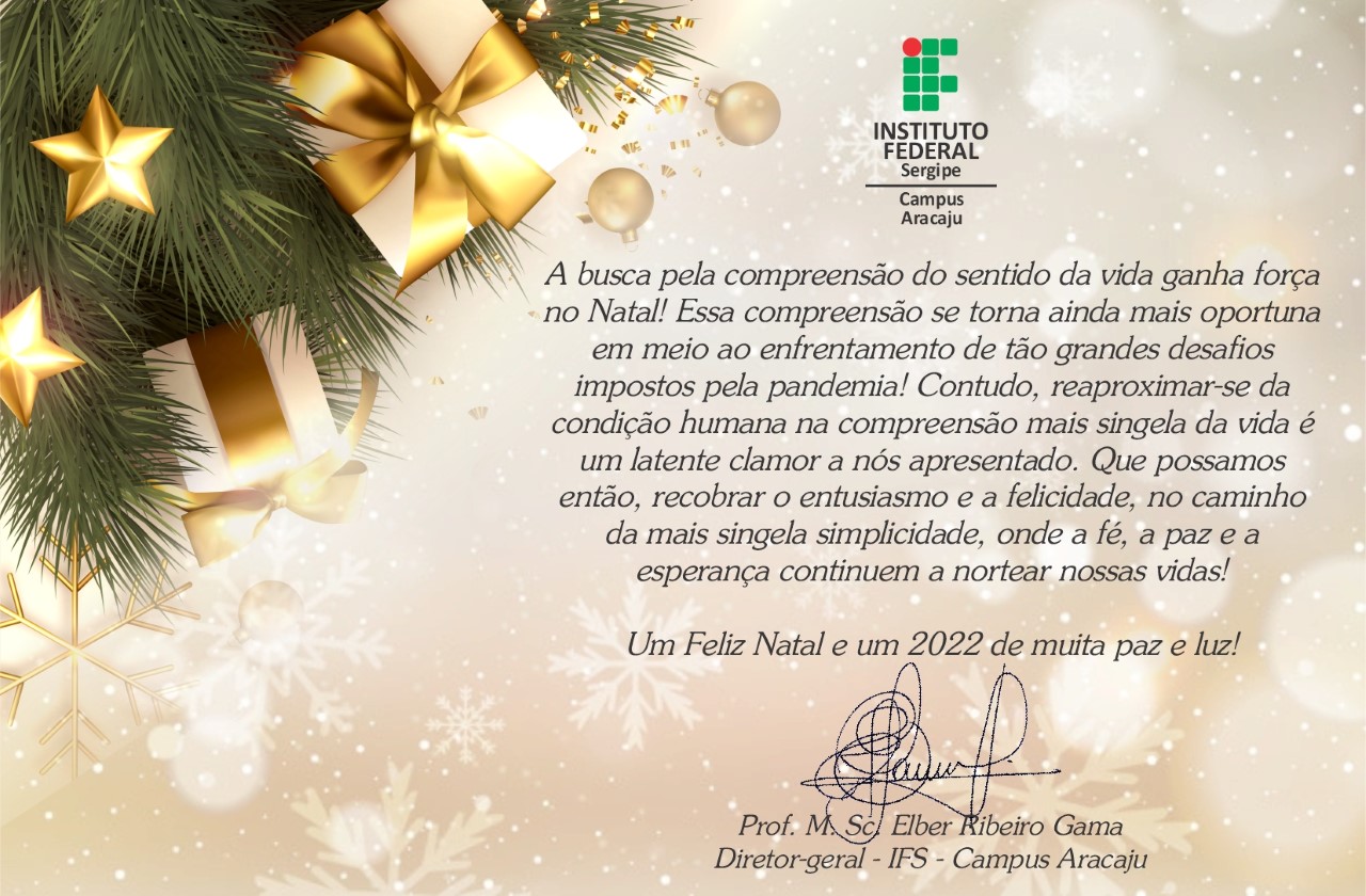 A Direção-geral do Instituto Federal de Sergipe, campus Aracaju, realizará dia 17 de dezembro, às 9h, o seu Culto Ecumênico, que reunirá representantes religiosos para discutir sobre o tema “Tempos de pandemia: reflexões de fé e esperança”. A celebração será virtual com transmissão por meio do canal oficial IFS Campus Aracaju no YouTube. O evento tem como objetivo principal aproximar a comunidade acadêmica e promover uma reflexão nas celebrações de fim de ano.