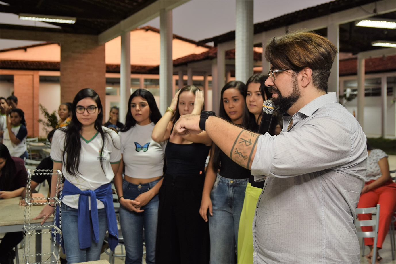 A dinâmica teatral com ator e professor de teatro Paulo Ricardo dos Santos foi uma proposta inovadora da organização do evento, realizado pelo Centro Acadêmico de Engenharia Civil (Caec) em parceria com a coordenação do curso. A oficina “Construção de cenários de carreiras para o futuro engenheiro em cena” usou técnicos de improvisação e raciocínio lógico para criar situações-problema a partir dos desafios cotidianos vivenciados no exercício profissional para que os estudantes pudessem resolver.