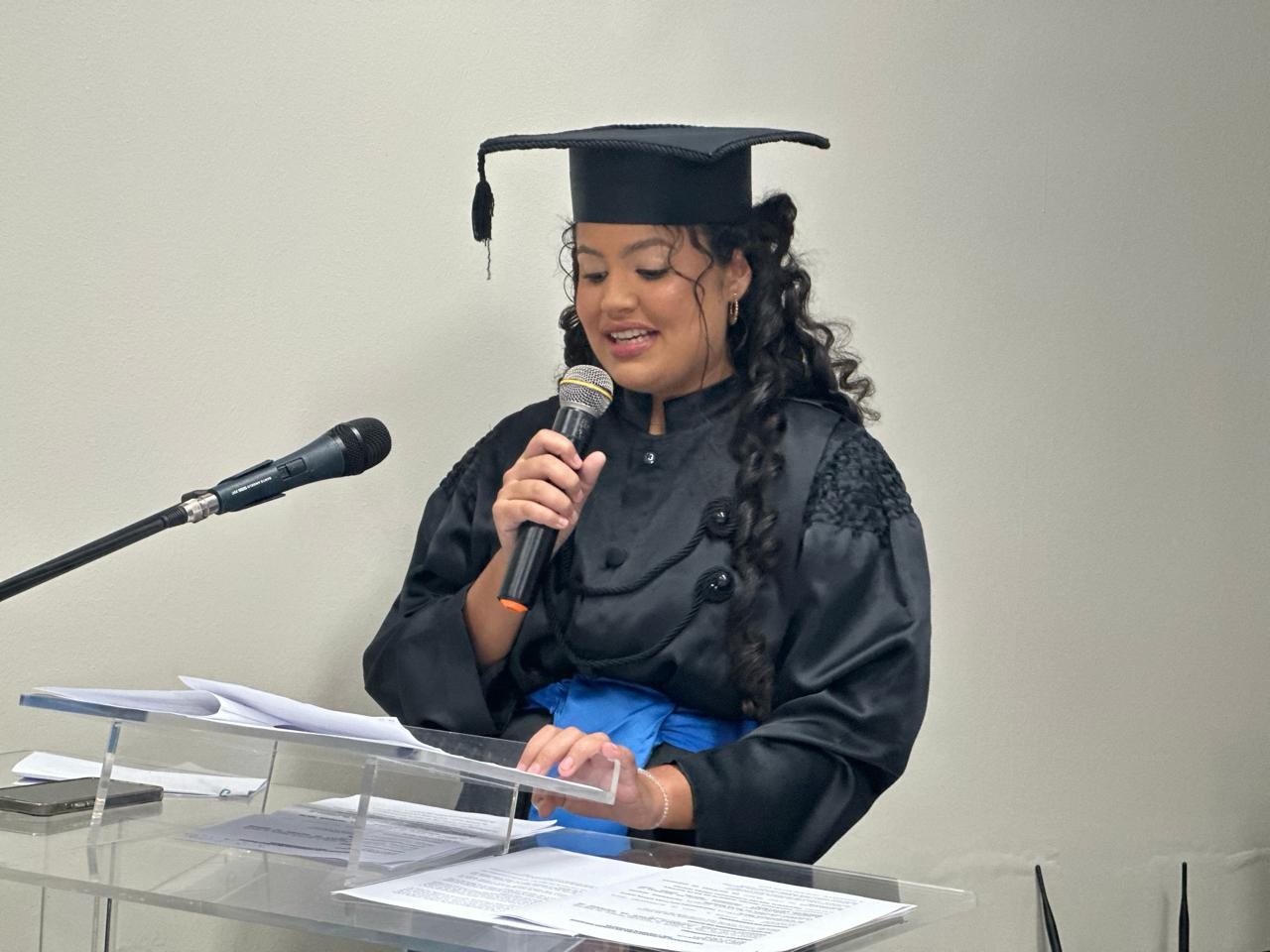 A diretora iniciou sua fala agradecendo às famílias dos formandos por terem confiado seus filhos ao IFS e desafiarem o instituto a adequar rotas para aprimora a oferta de uma educação pública, gratuita e de qualidade social. “Tenho a certeza de que entregamos à sociedade profissionais altamente qualificados não apenas para o exercício de suas profissões, mas também para lidar com o comprometimento ético, social e ambiental tão necessário no processo de formação humana”, enfatizou.