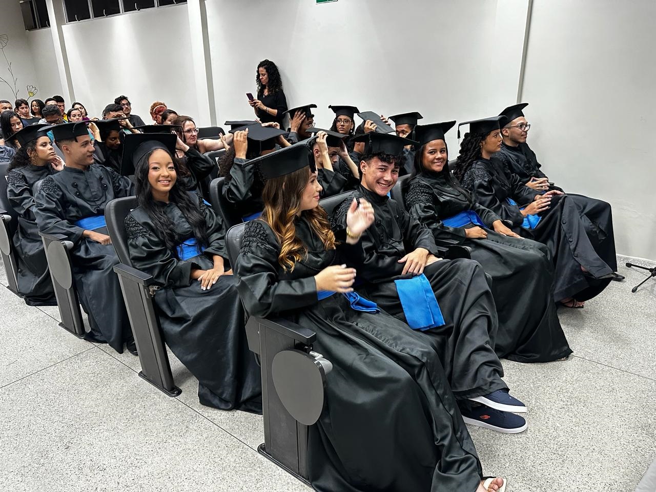Formandos reuniram familiares, amigos e professores para comemorar primeira conquista da vida adulta