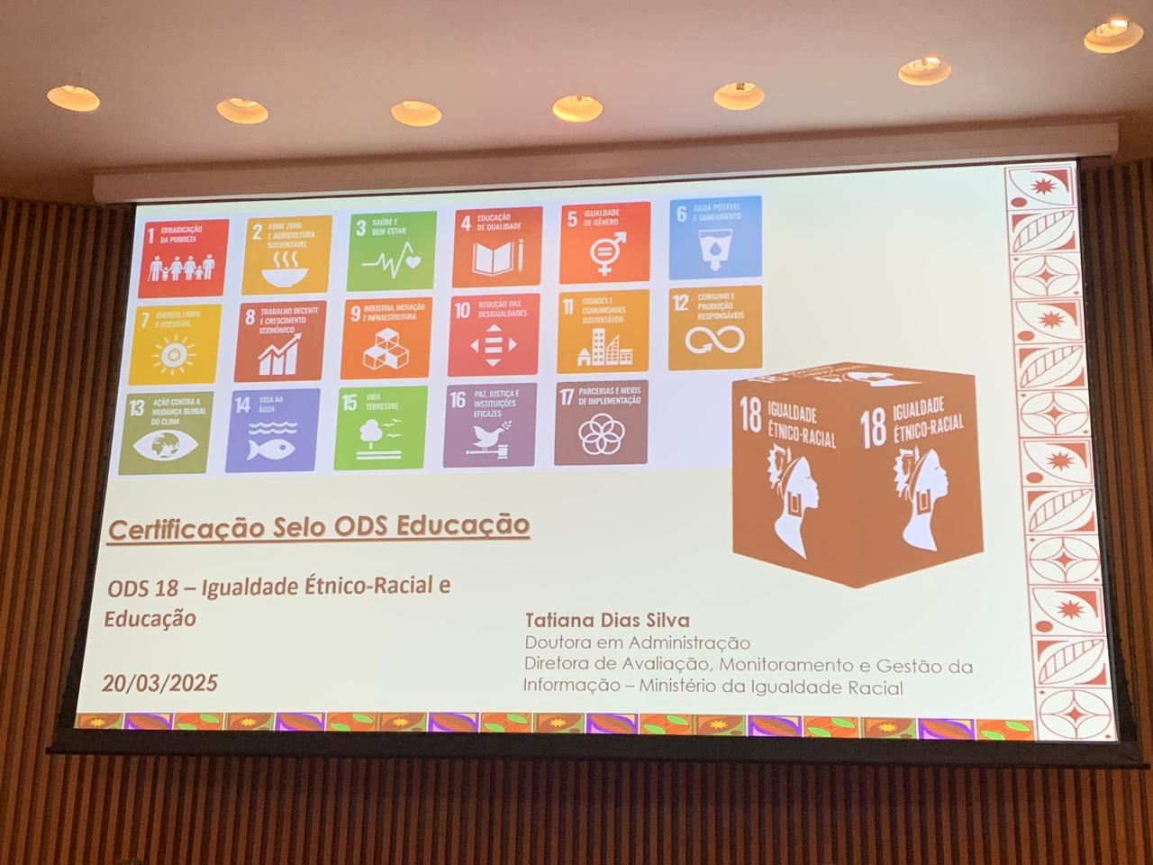 Durante o evento também foi apresentado O ODS 18, que é fruto da articulação entre o Ministério da Igualdade Racial, dos Povos Indígenas, dos Direitos Humanos e Cidadania e do Ipea. “Esse ODS trata especificamente da igualdade étnico - racial e surge para enfrentar o racismo e a desigualdade e faço aqui uma ressalva já colocada por professores e coordenadores de pesquisa e extensão do IFS. As ações afirmativas precisam ser realmente efetivadas, pois temos um grupo grande de alunos que necessita dessas ações e precisamos estar atentos à sua concretização para a real promoção da igualdade na educação”, pontuou a professora Aline Jesus de Sá.
