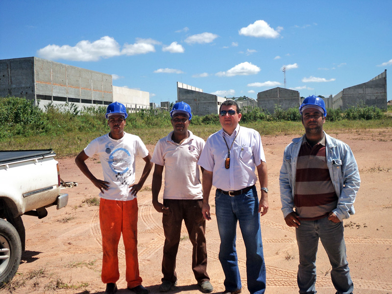 Durante a visita, Luciano fez questão de verificar, também, junto ao supervisor da empresa contratada, o funcionamento dos equipamentos de topografia instalados, assim como a demarcação da poligonal da obra, limites e nivelamento do terreno.
