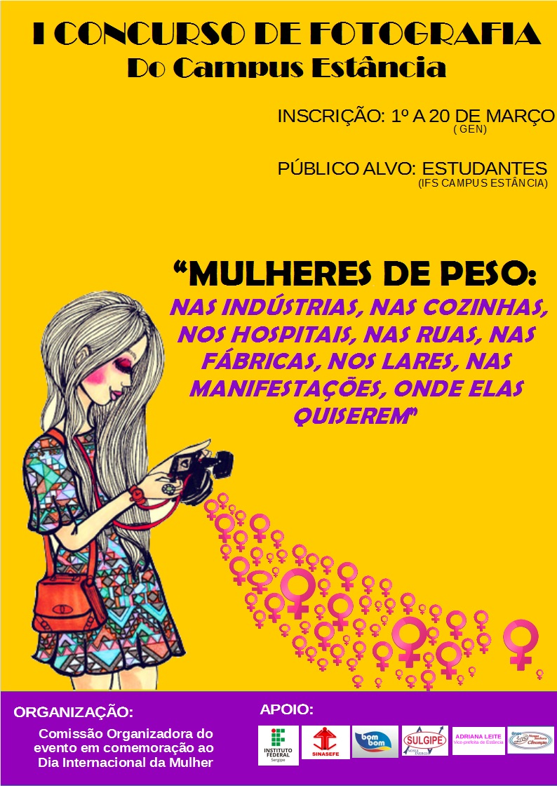 Para comemorar o 8 de março, Dia Internacional da Mulher, o Instituto Federal de Sergipe (IFS) – Campus Estância preparou uma programação especial. As atividades acontecem nos próximos dias 30 e 31 e incluem uma mesa de discussão sobre a questão de gênero, um stand educativo na área de saúde da mulher e um concurso de fotografia voltado para os alunos. A organização é da Coordenadoria de Assistência Estudantil (Coae).