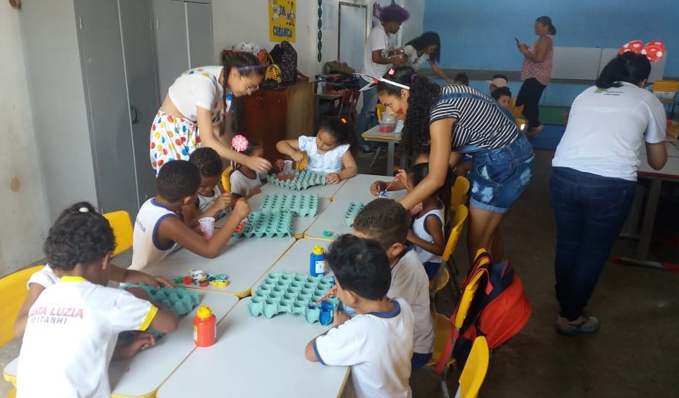 Mais de 20 alunos bolsistas e voluntários, acompanhados das professoras Aline Sá e Márcia Maria de Jesus Santos, promoveram para as crianças da creche encenações teatrais com fantoches, que abordaram a importância da preservação do meio ambiente, da reciclagem e do consumo de alimentos sem agrotóxicos.