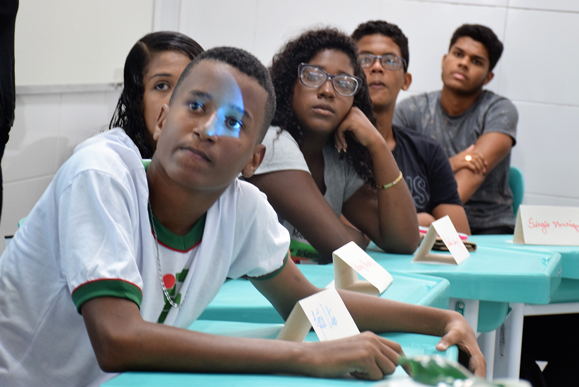 “Nunca imaginei passar na prova. Vim de escola pública e fiquei até o fim do primeiro semestre sem professor de Português e Matemática. Aqui é muito mais do que eu esperava, é a realização de um sonho”, afirmou Kaellane Santos Ferreira, 15 anos, durante o Acolhimento aos alunos aprovados no processo seletivo 2019.1. A programação ocorreu nesta segunda, dia 4, e incluiu palestras, vídeos, dinâmica de apresentação, socialização de experiências de estudantes e declamação de poesias do Coletivo (Re)existir.