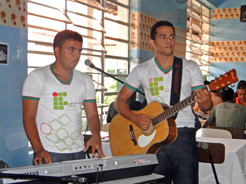 O repertório do grupo foi composto por canções que fizeram sucesso nas vozes de Roberto Carlos, Marisa Monte, Chimarruts e Adriana Calcanhoto. “Sugeri algumas músicas que abordassem o amor, afetividade, mas os alunos foram os responsáveis pela relação final”, explica a professora Thaise Alves, responsável pelo coral, composto por 20 alunos dos cursos de Agropecuária, Informática e Agroindústria. A apresentação foi acompanhada pelos estudantes Gladston Nogueira, no teclado, e Pedro Rinaldo, no violão, alunos dos cursos de Agroindústria e Agropecuária, respectivamente.