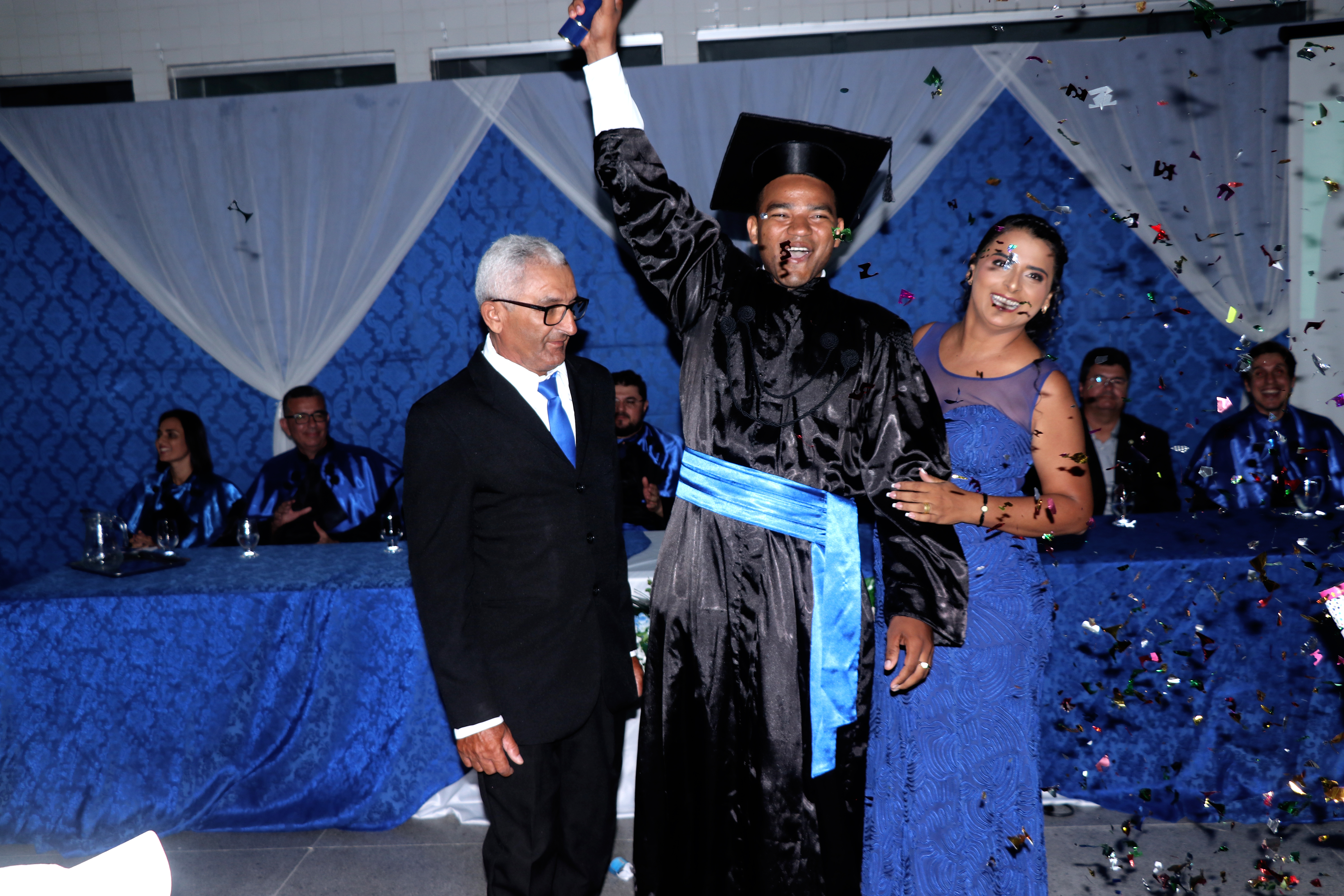 Dentre os formandos dessa grandiosa turma, estão histórias como a de Seu Antônio, que se forma hoje aos 57 anos, e que se orgulha, em memória, de sua mãe, que sempre o incentivou a estudar. Para Breno Lima, também concluinte, os agradecimentos voltaram-se aos seus professores. “Não poderia de deixar agradecer aos mestre e amigos que foram cruciais nessa jornada, hoje meu coração exulta de gratidão e alegria”, disse Breno.