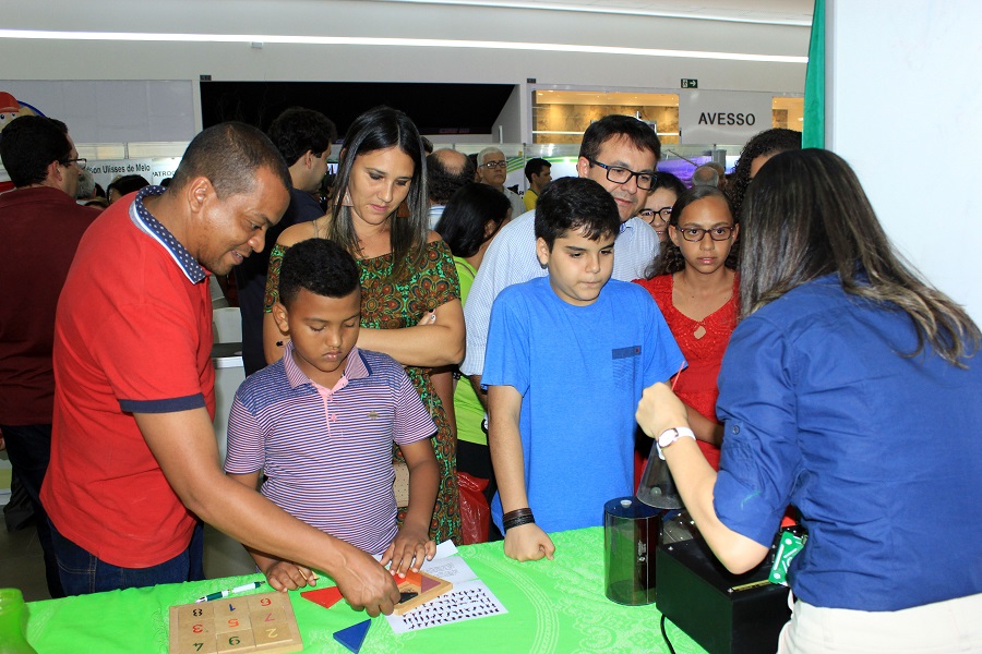 A participação do Campus Itabaiana contou ainda com o envolvimento do público em jogos matemáticos, que foi aplicado pela docente da disciplina de matemática, Elisânia Santana de Oliveira. “A nossa oficina tem como objetivo materializar alguns problemas matemáticos que envolvem, por exemplo, Teorema de Pitágoras. Quisemos mostrar a disciplina como algo mais palpável, pois isso facilita muito a compreensão e chama mais a atenção do que simplesmente trabalhar com papel e caneta”, aponta Elisânia, dizendo ainda que houve bastante envolvimento do público presente, pois mesmo diante da concorrência com diversos trabalhos importantes, as pessoas pararam e se desafiaram com os materiais.