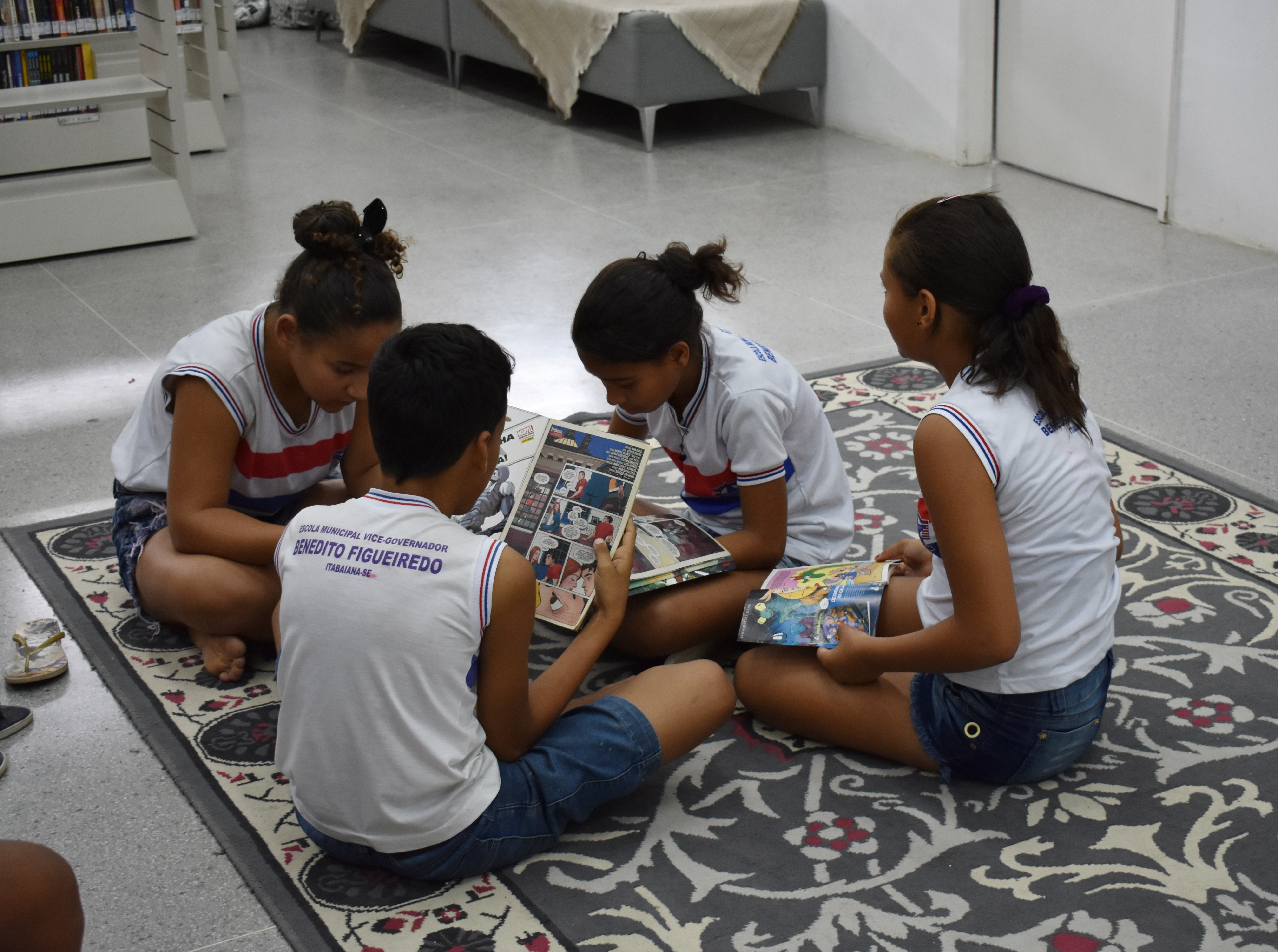 Para encerrar o evento, o projeto “Biblioteca pra quê?” recebeu crianças da Escola Benedito Figueiredo, situada no bairro São Cristóvão, onde está localizado o campus. Meninos e meninas assistiram a curtas de animação, leram gibis, brincaram na Ludoteca, participaram de uma partida de queimado matemático. “O Jogo foi uma adaptação do Jogo Queimado dos Inteiros que vivenciei enquanto discente do curso de Licenciatura em Matemática. Foi interessante abordar a Matemática de uma forma diferente de como é costumeiramente abordada nos livros, de maneira mais dinâmica e ativa do ponto de vista do aprendizado do aluno. Muitos tem medo dessa disciplina. Apesar de ter sido uma visita curta, os alunos da Escola Municipal Benedito Figueiredo conseguiram colocar em prática o entendimento de operações matemáticas, além de fazer uma boa revisão delas”, revelou o auxiliar de biblioteca, José Gonçalves.