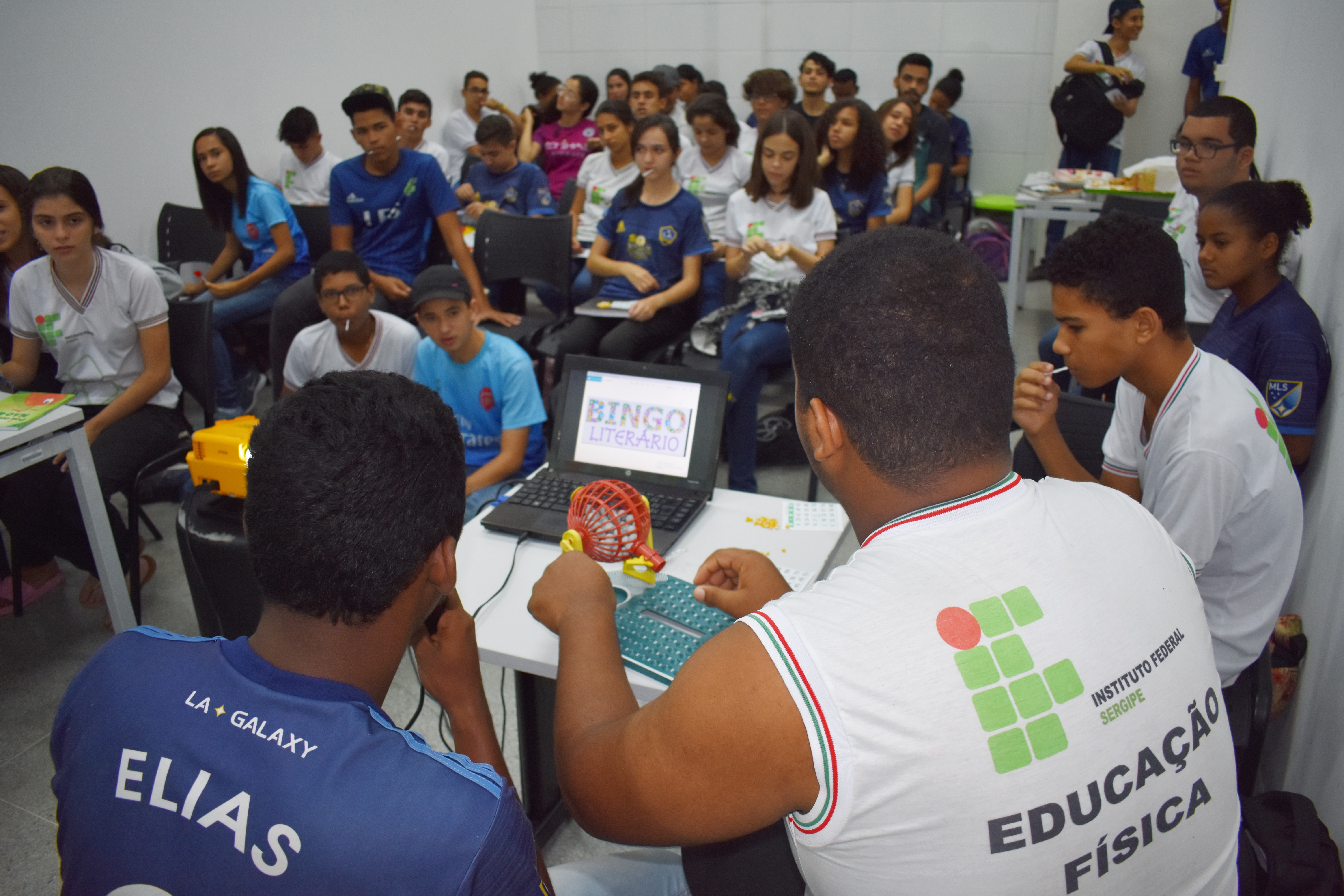 Por fim, estudantes do IFS ganharam brindes ao revelarem conhecimentos sobre literatura e também a respeito do acervo e dos projetos da biblioteca, num grande Bingo Literário.