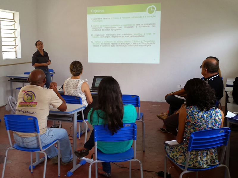 A coordenadora de Ensino Superior, Cláudia Cardinale, apresentou o Regulamento de Gestão dos Encargos Docentes e orientou os professores do Campus Propriá a respeito do preenchimento do Plano Individual de Trabalho (PIT) e do Relatório Individual de Trabalho (RIT).