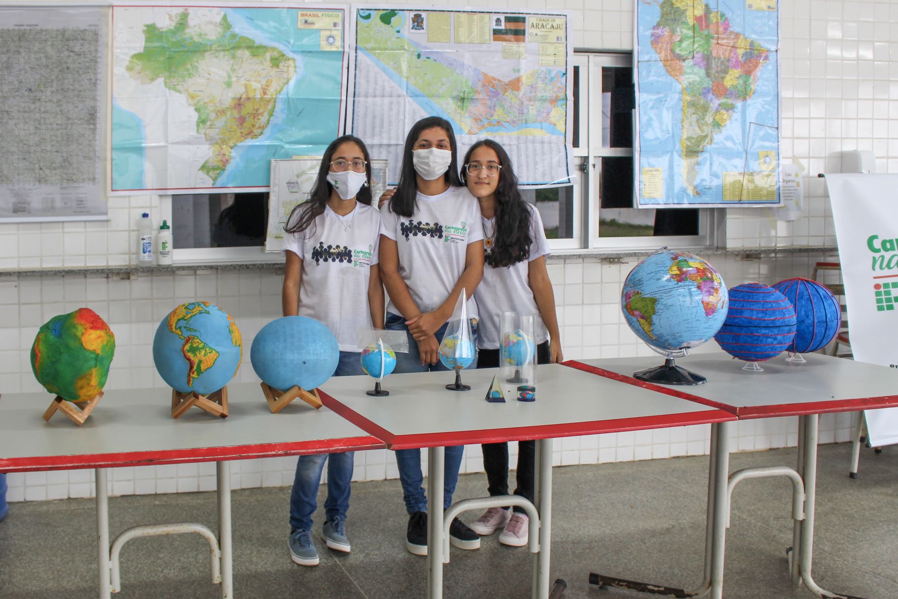 O evento contou ainda com a exposição do material didático produzido no projeto de extensão voluntária "Cartografia na Escola”, que tem como produto o jogo de tabuleiro "Evolução da Cartografia", o qual está em processo de registro de marca no Núcleo de Inovação Tecnológica do IFS por seu caráter como inovador. Também foram expostas impressões em 3D da Terra e outras maquetes produzidas pelas alunas voluntárias.