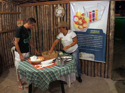 Na casa de farinha, os estudantes utilizam utensílios e ferramentas artesanais e ainda comercializam alimentos regionais, como beijus e pés-de-moleque. Após o evento, o local será utilizado pelas alunas integrantes do programa, que irão aprender a produzir os alimentos e comercializar os produtos, aumentando sua renda familiar.
